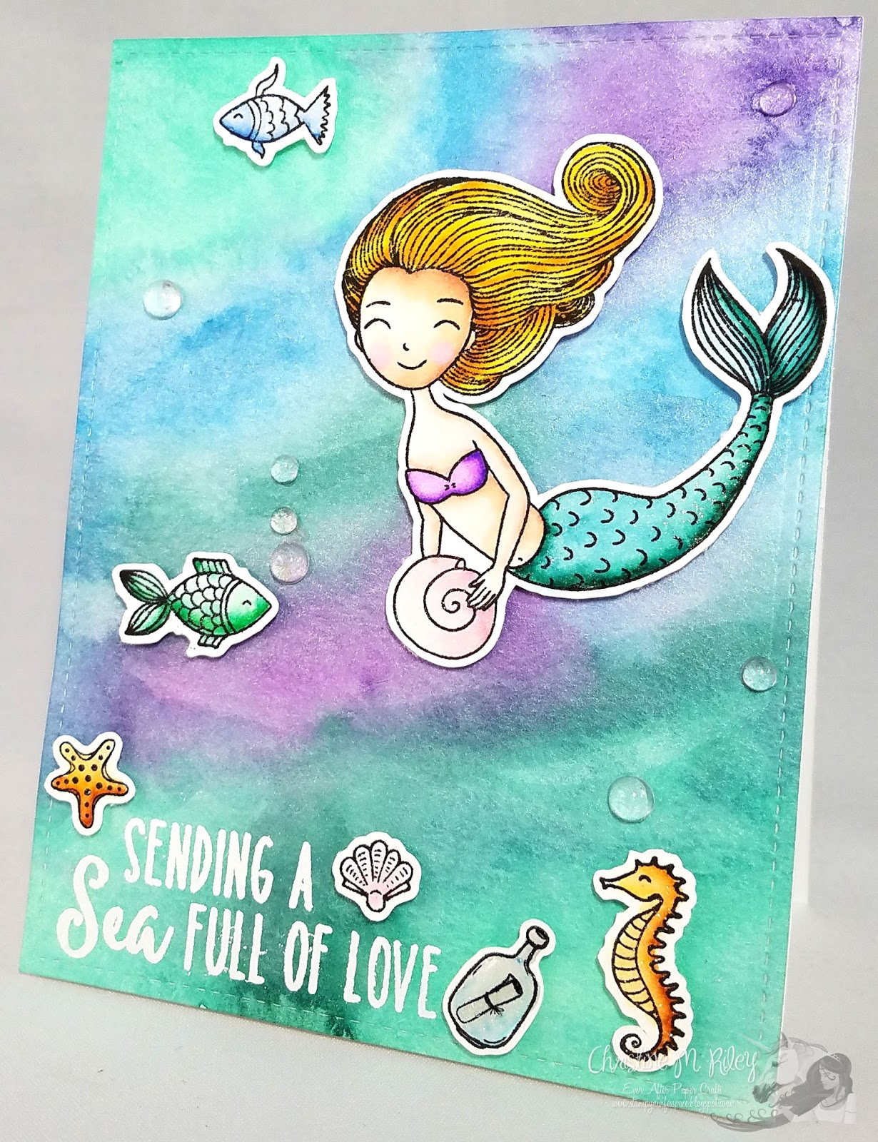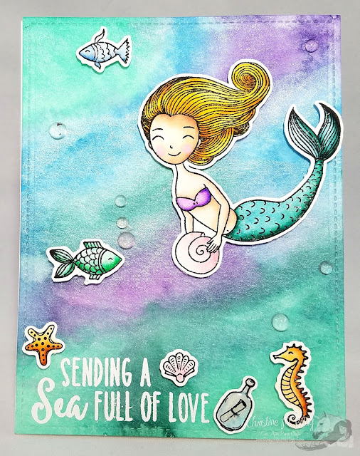 For today's card, I decided to use the adorable mermaid stamp and assorted images from the Under the Sea Stamp Set by Honey Bee Stamps. I stamped the images onto some Canson XL watercolor paper and then colored the images with my Zig Markers and a Detailer Water Brush. Next, I cut the image out with the coordinating Under the Sea Honey Cuts Dies. Next, I set the images aside and created my background. I used my Gansai Tambi Watercolor 36 color set and a paint brush to create the fun background. I then stamped the sentiment with some Versamark Ink and white heat embossed it. Then I adhered the panel onto a standard A2 sized notecard. Next, I adhered all the images with some foam tape to create this fun scene. I also added lots of glitter to the images using my Wink of Stella Clear Glitter Pen. I hope you enjoyed today's card. Have a wonderful holiday season and a Happy New Year!!!