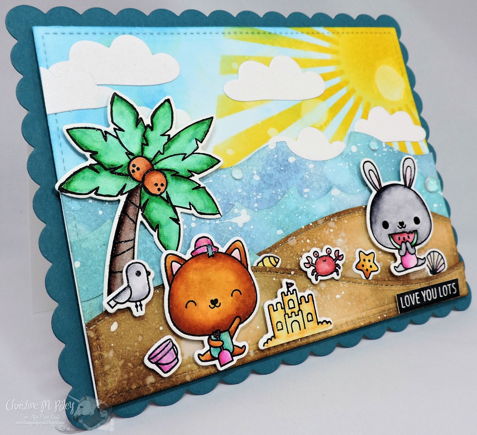 Hi everyone! I'm a bit behind this week in my videos/blog postings. I've gotten another sinus infection, ugh, so that's put me a bit behind. I'm excited to share today's video and card with you though, I'm really happy with how this one came out. In my video today, I teach you how to create a gorgeous underwater scene using distress inks. I used the adorable Mermazing stamp set from My Favorite Things (I love this set!) Here's my video on how to create the background: